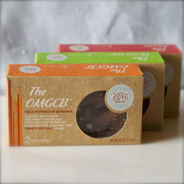 The OMGCB: Holy mother of brownie. A sweet assault of decadent chocolate brownie with rivers of handcrafted caramel and French Sea Salt. Damn!