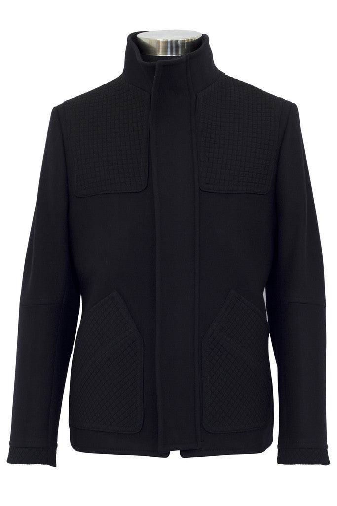The Burton Zip Coat is a fly-front zip jacket constructed from wool and featuring contrast panelling. Made in Australia.