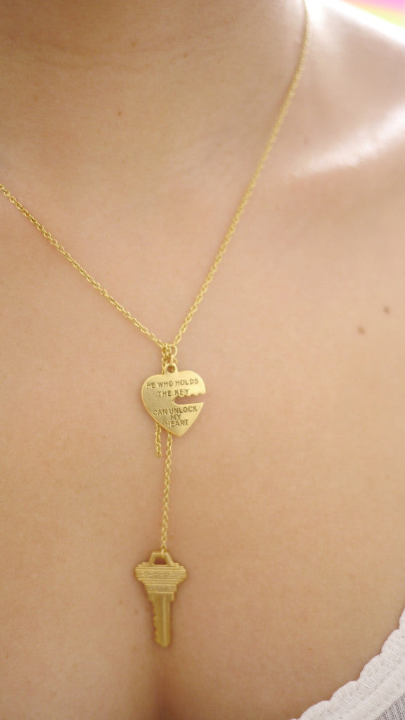 with "he who holds the key can unlock my heart" hangs off a 16"