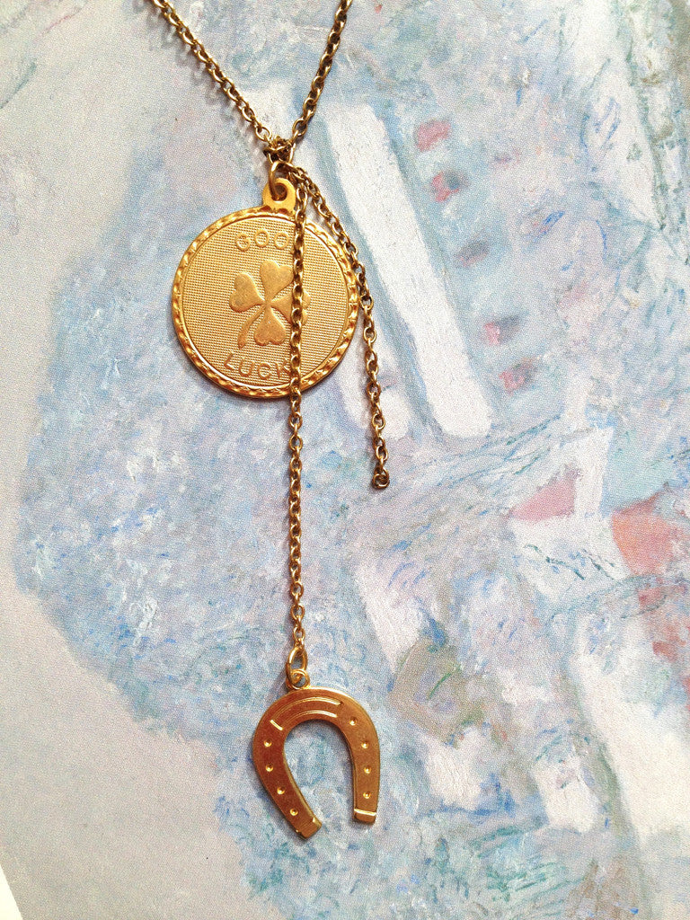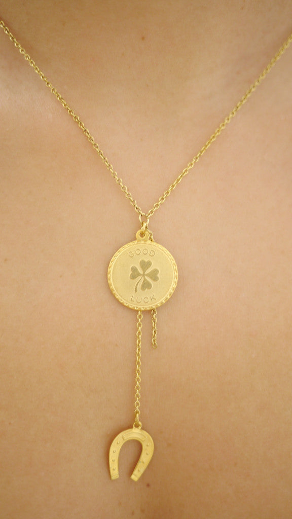 Adorable necklace, perfect to wear everyday. small round "good luck" charm with four-leaf clover hangs off a 16"