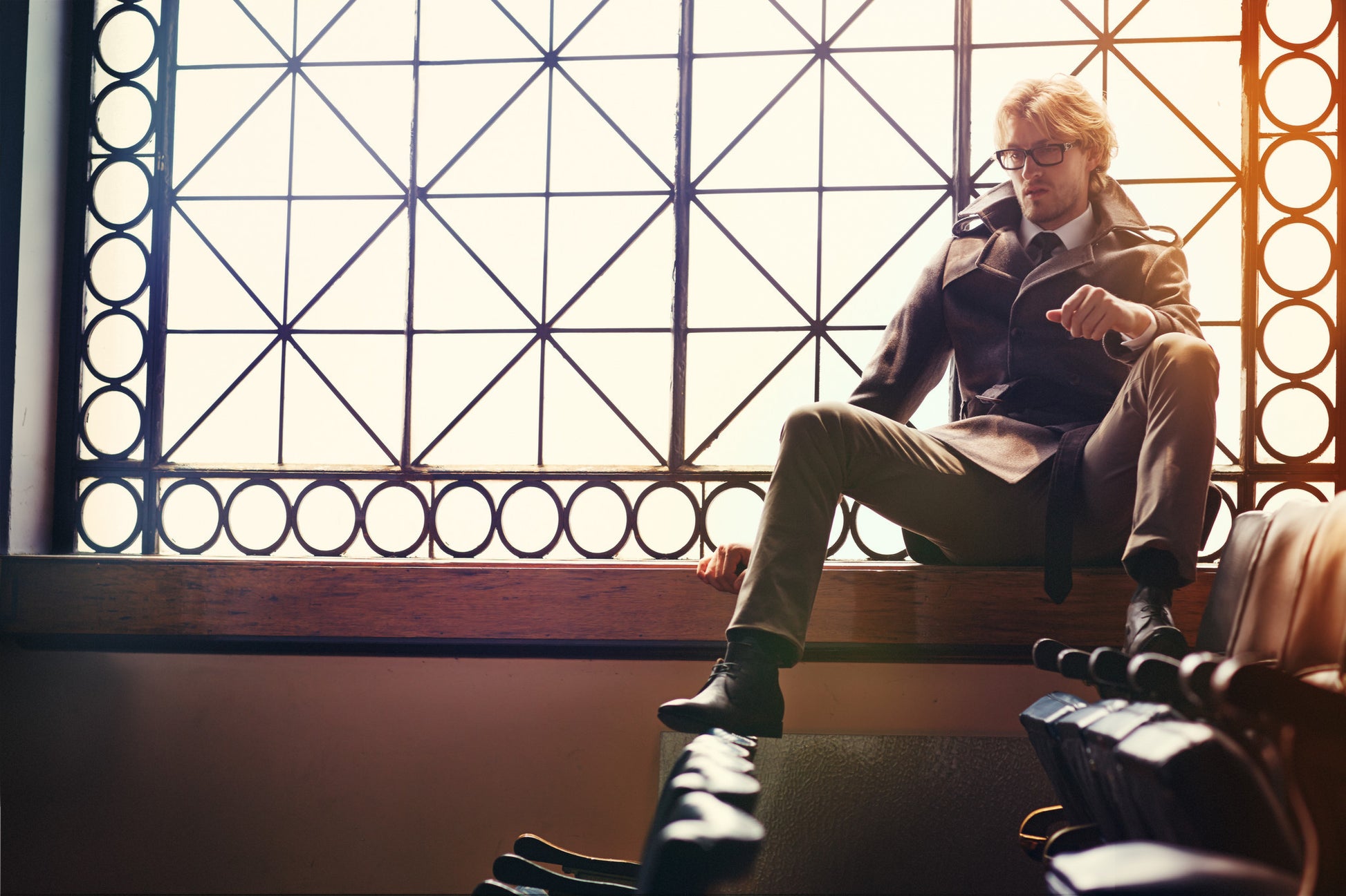 - Double-breasted wool trench coat