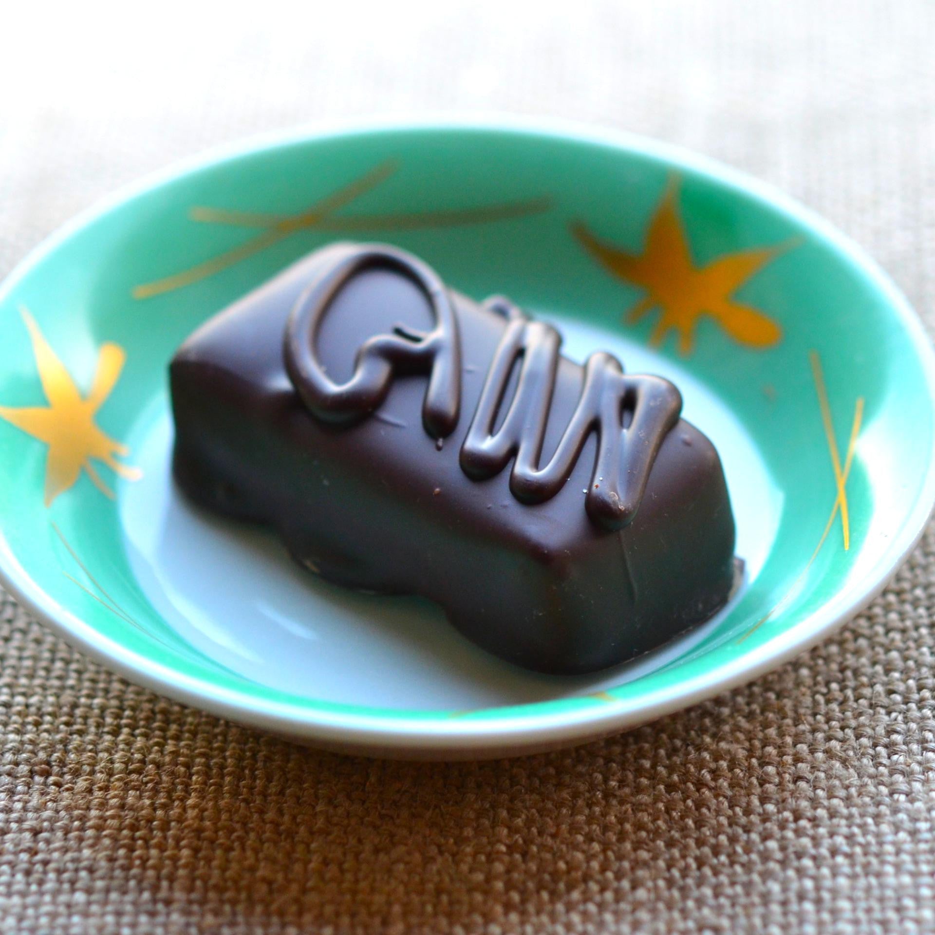 Slightly sweetened crunchy peanut butter in 72% dark chocolate.